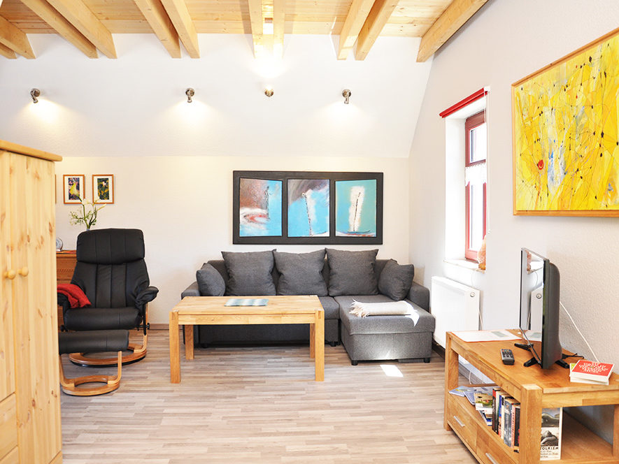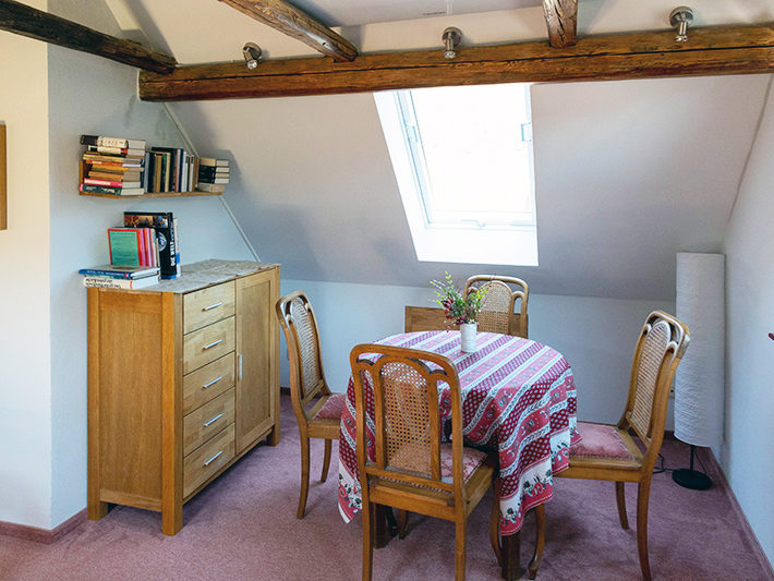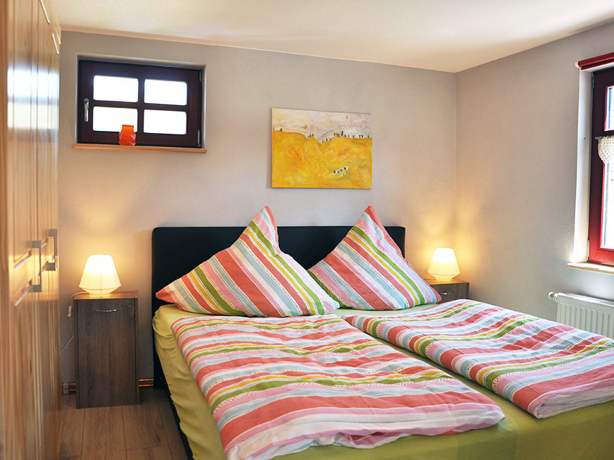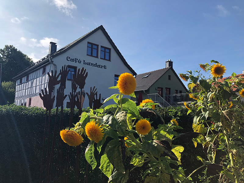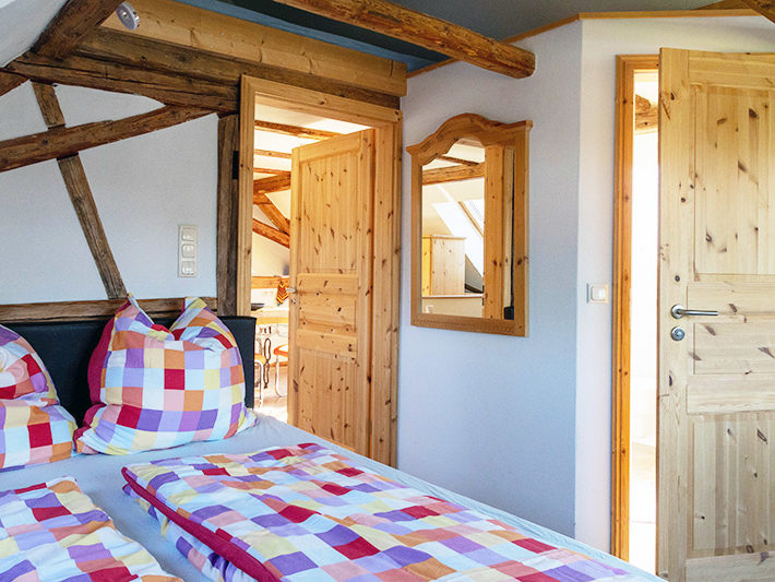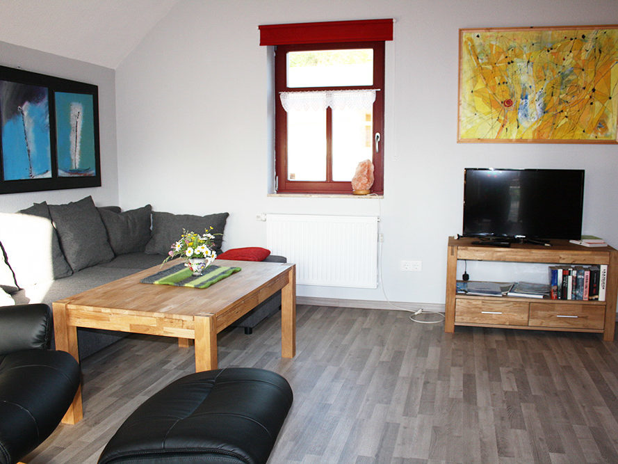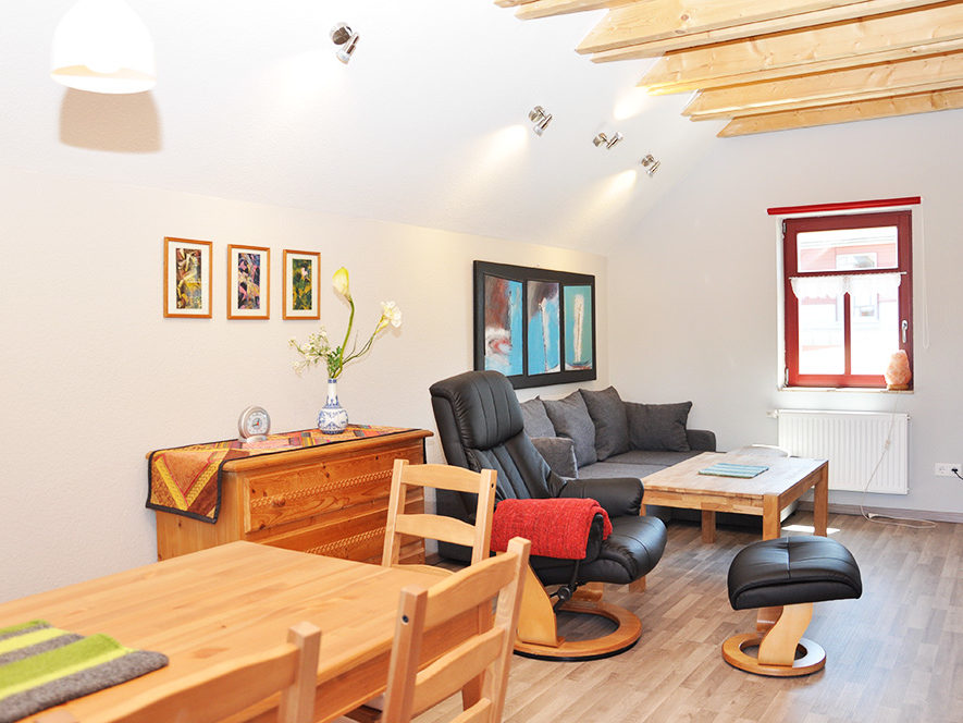 Unsere vier gemütlichen Ferienwohnungen, Belle-Vue, Quelle, Garten und Tenne befinden sich im komplett sanierten Fachwerkhaus bzw. über dem Stallcafé in dörflicher Idylle im 400-Seelen-Ort Kleinbreitenbach in einem geschützten Talkessel ohne Durchgangsverkehr. Sie liegen am umfangreichsten Kunstwanderweg Deutschlands (mit 60 großen Objekten), unweit eines der größten Orchideenvorkommen Europas und bieten Blick auf eine bemerkenswerte romanische Wehrkirche aus dem 12. Jahrhundert. Die faszinierende Landschaft mit den für Thüringen untypischen steilen Muschelkalkfelsen, die klare Luft und die unzähligen Wanderwege sind neben der Ruhe Garant für gute Erholung.