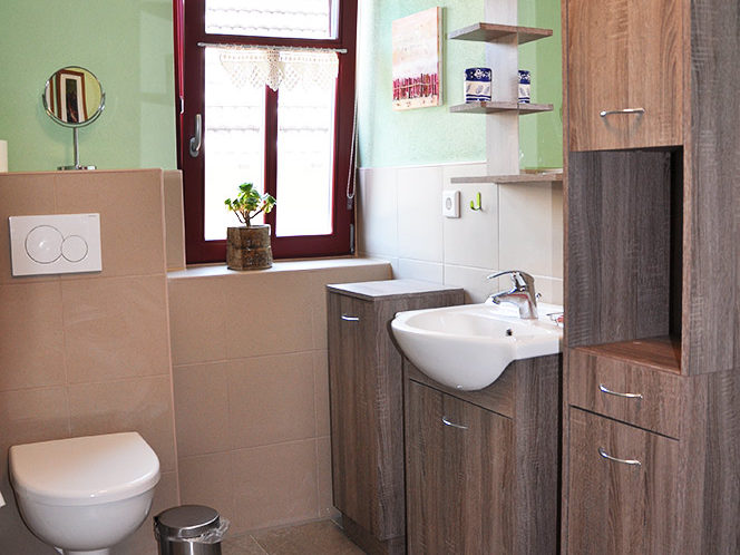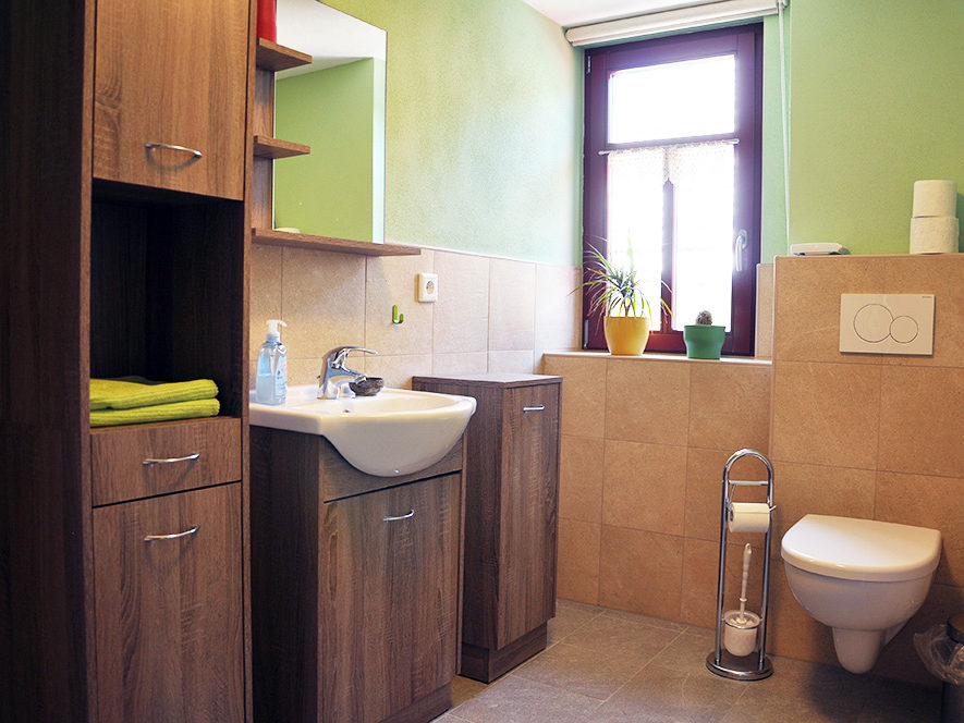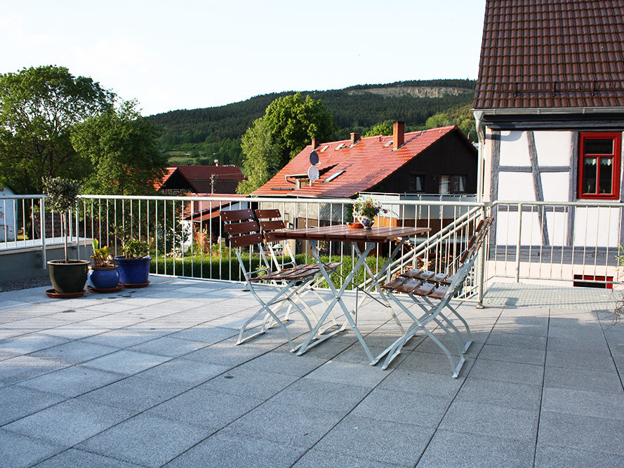 Unsere vier E-Bikes können tageweise ausgeliehen werden und wir versorgen unsere Gäste bei Bedarf mit ausgearbeiteten Routen per Fahrrad-Navi. Auf diese bequeme Art ist auch die Fahrt auf den Rennsteig (ein 180 km langer Höhenweg, bekannt durch das Wintersportzentrum Oberhof) leicht zu bewerkstelligen. Kulturell bietet die nähere Umgebung sehr viel: Von Luther und der Wartburg über Bach in Arnstadt, Erfurt mit der ältesten Synagoge Deutschlands, dem Stammsitz vieler europäischer Königshäuser, dem Schloss Friedenstein in Gotha bis zu Weimar mit Goethe, Schiller, Cranach und… Van de Velde. Eine kleine Auswahl von Ausflugstipps ist auf der Homepage zum Nachlesen. Sehr gerne geben wir Ihnen Empfehlungen. Wenn Sie die Seele baumeln lassen wollen, steht Ihnen unser Garten zur Verfügung. An unser Grundstück grenzt außer Hörweite ein öffentlicher Spielplatz.